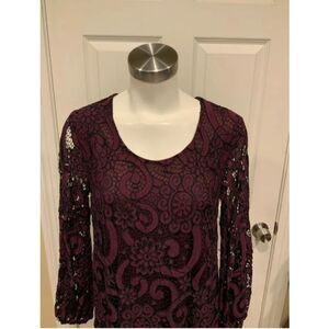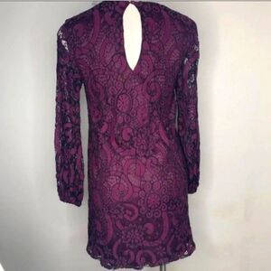 Anthropologie Sunday in Brooklyn Joy Purple with Black Lace Long Sleeve Dress XS