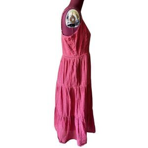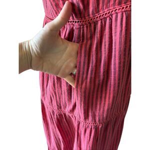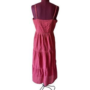 Anthropologie Sundry Elena Tiered Midi Dress size 2 Red Striped Sleeveless
