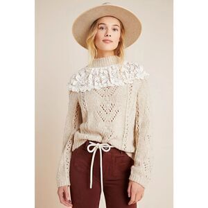 Anthropologie Suzanne Pointelle Lace Cream Sweater Size XS