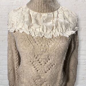 Anthropologie Suzanne Pointelle Lace Sweater Size XS