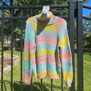 Anthropologie T. La Rainbow Ombre Turtleneck Knit Sweater