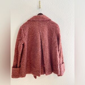A faux fur style retro swing jacket with a 50’s style. Beautiful lining. New with tags with a flaw. The top snap is broken. Not a deal breaker for this beautiful jacket. Pockets. With snaps closed Ptp 21, length 24. Questions? Leave a comment below!j-4