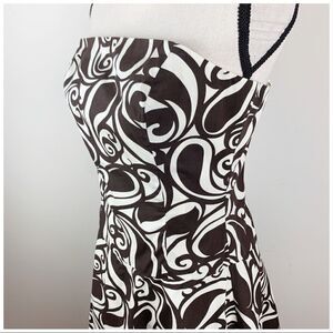 Anthropology Tabitha Women’s Strapless Brown and Cream Paisley Drop Waist Dress w/Full Skirt Sz 10 EUC. Crisp cotton with a luxuriously full skirt. Back zip, fully lined. Party ready. Originally had a yellow belt, but works without or add your own. Classy but with a boho vibe. Please see photos for additional details. Pit to Pit 17“ Waist 30“ Length 37“