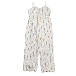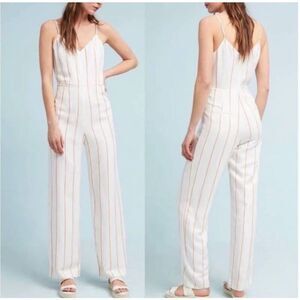 Anthropologie The Essential Jumpsuit Linen Blend Cream striped women’s Size 8