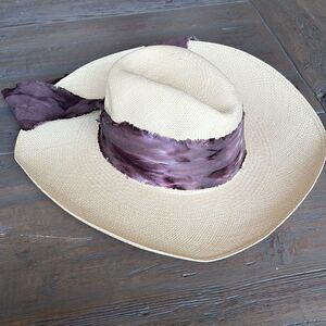 Anthropologie Tie-Dye Trimmed Straw Rancher
