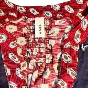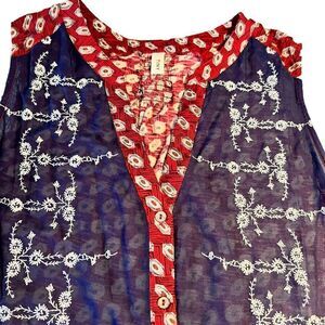 Anthropologie Tiny red navy cream silk embroidered sleeveless top XS