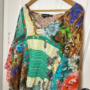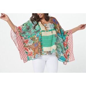 Anthropologie Tolani Collection Floral Patchwork Mixed Media Poncho Top 1X Boho