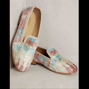 Anthropologie Tribal Print Silk Velvet Loafers