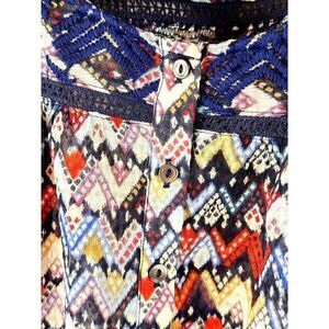 Anthropologie Vanessa Virginia Boho 3/4 Sleeve Multicolor Blouse Sz 2P EUC