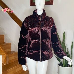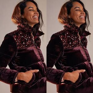 Anthropologie Vera Sequined Velvet Puffer Jacket