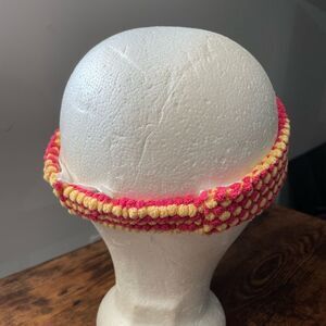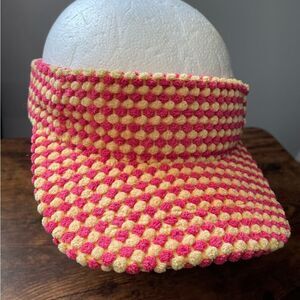 Anthropologie Visor Pink & Yellow Chenille Checks OS