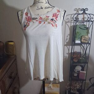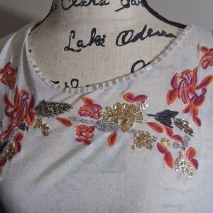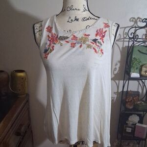 Anthropologie W5 Floral Embroidered Off White Top Size Small