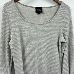 Anthropologie W5 Gray Ribbed Sweater XL. Blouson sleeves, ribbed, knit. Gently used condition with no visible flaws. No pilling.