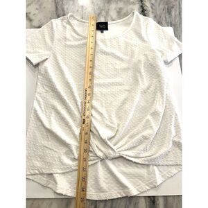 This Anthropologie W5 white short sleeve shirt in size M features a textured design and knotted waist accent for added style. Made from a comfortable cotton blend, this shirt is in excellent used condition.