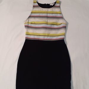 Back/skirt: 70% viscose, 25% nylon, 5% spandex Contrast: 100% polyester