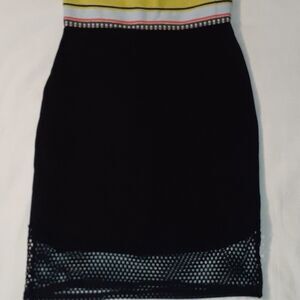 Details- Crew neck - Sleeveless - Embroidered bodice - Exposed back zip closure - Fishnet mesh hem - Made in USA