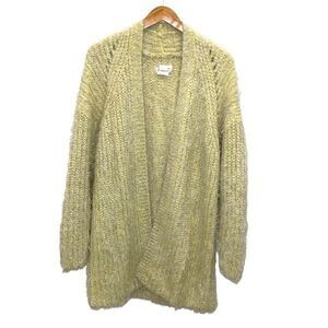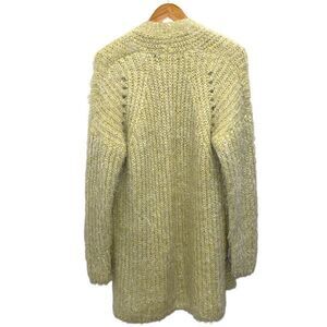 Anthropologie Womens Larkin Shimmer Metallic Fuzzy Eyelash Knit Cardigan Yellow Large