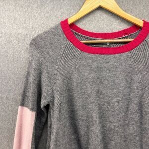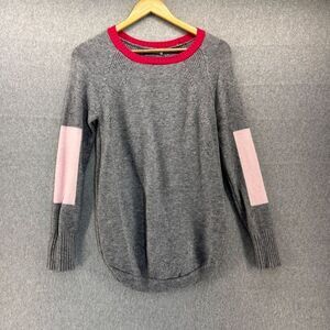 Anthropologie Women's XS Gray Pink Crewneck Sweater Colorblock Elbow Prep Rebeka