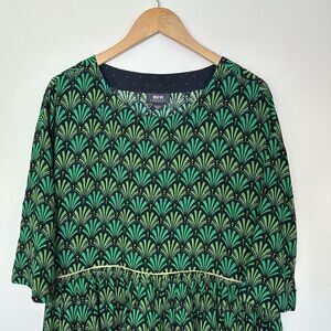 Anthropologie X Maeve Megan Cloyd Green Roaring 20’s Geometric Magnolia Babydoll Tunic Dress