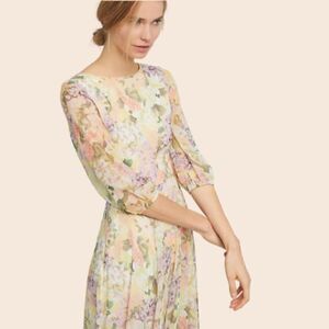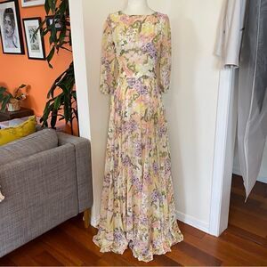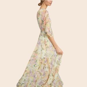 If Spring were a dress, this would be it. Flowy and Elegant in the color of sunshine and dressed in flowers. Perfection!
