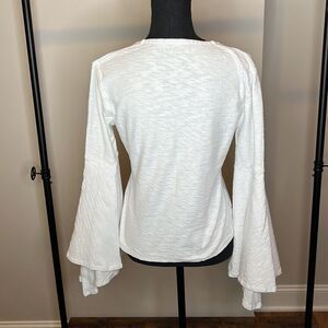 Anthropologie belle sleeve top. Size small. Worn once. Statement sleeve makes this casual top a standout. EUC. No visible flaws. The material is a heavier cotton. Not a lot of stretch. Pit to pit is about 18” and length is about 21.5”. Smoke and pet free home