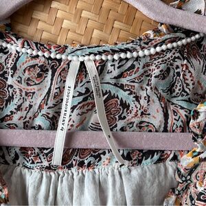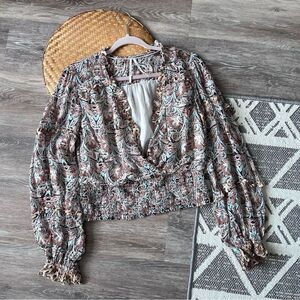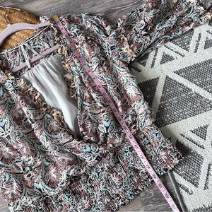 Anthropologie boho floral smocked surplice cut blouse Women’s Size M