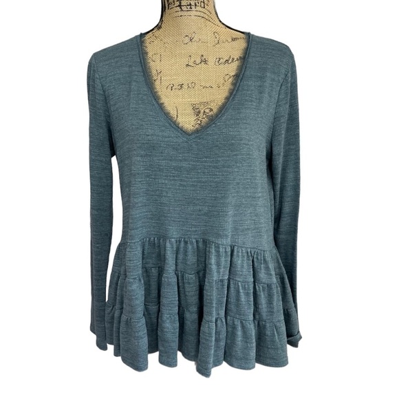 Anthropologie-deletta-ruffled BOHO Green Chic Blouse