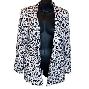 Anthropologie hutch blazer open long line peachy pink leopard linen mob wife