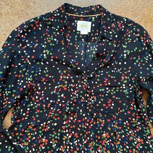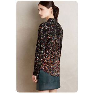 Anthropologie maeve Wynwood black multi dot button down front blouse top