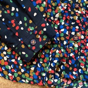Like new Anthropologie Maeve Pintucked Multi Wynwood black and multicolored polka dot v neck button down front blouse top. EUC, great shape, size 0, rayon, see pictures for details.