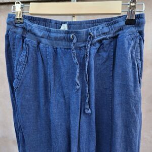 baggy fit chambray pants. drawstring waist. pants have tabs so you can roll them up. Gently preloved condition. Any flaws will be noted.