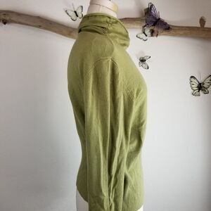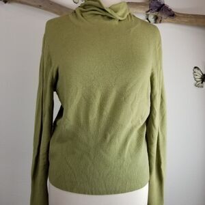 Fitted bottom with a dolman top. Long sleeves and oversized neck with rouching on sides