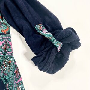 Anthropologie navy red triangle mixed media pleated back top S
