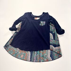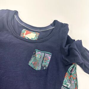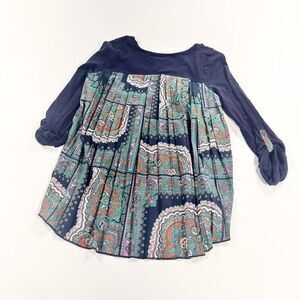 Anthropologie navy red triangle mixed media pleated back top size S.