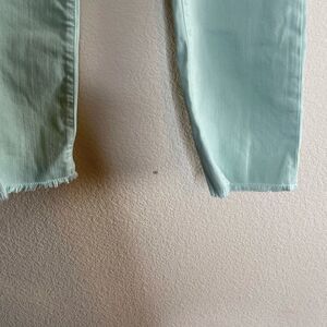 They have a cropped fit, 24 inch inseam. 9 inch rise. No flaws. Size 27. Has the raw hem