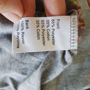 V neck gray tshirt front with contrasting rose floral back. Swing fit. Tab sleeve with contrasting tab. Very gently used condition
