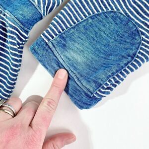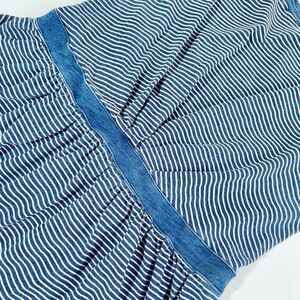 Anthropologie blue postage stamp pinstripe three quarter sleeve casual cotton dress.