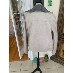 Anthropologies Sherpa Moto Motorcycle Jacket. This Cartonnier Sherpa Moto Jacket in size S is the perfect addition to any wardrobe. With a stylish design and comfortable fit, this jacket is sure to be a favorite go-to piece. The jacket features a basic style with a sleek and modern twist. The Cartonnier brand is known for its quality and attention to detail, making this jacket a reliable choice for any occasion. The jacket is made for women and is designed to provide a regular fit. There is one small spot on the back (see photo). May come out with dry cleaning.