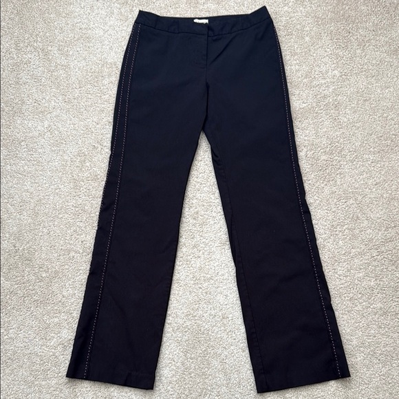 Anthropologie's Elevenses Bootcut Mid Rise Pink Accent Side Stitch Black Pants 4