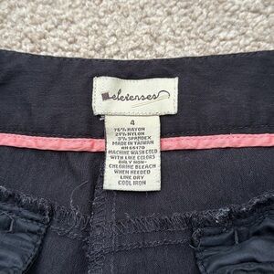 Anthropologie's Elevenses Pants - Bootcut Style - Mid Rise - Button/Clasp Zip Closure - Black Wash with Pink Side Accent Stitching Down Each Leg - Size 4 - Excellent Stretch - Rayon, Nylon & Spandex Blend - No Flaws - Excellent Used Condition!