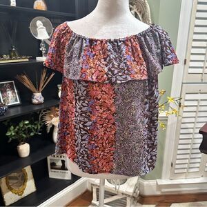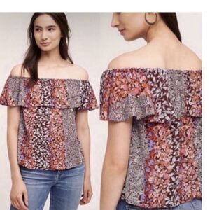 Anthropologies Maeve Floral Ruffle Off the Shoulder Blouse Size Small