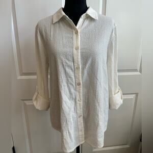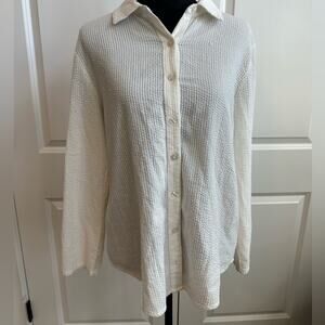 Anthropologie's Porridge Creamy White Ribbed-Like Textured Collar Button Down