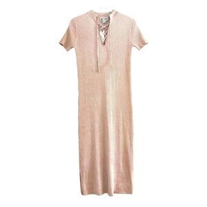 Anthropologie's Saturday Sunday Pink Opal Shimmer LaceUp Neckline Dress Sz M NWT