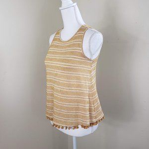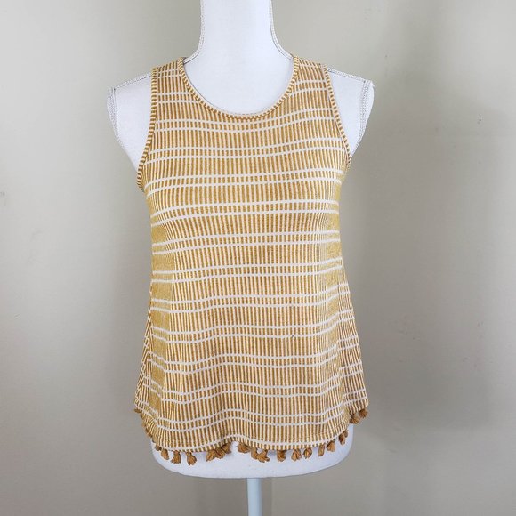 Anthropologie's W5 Tassel Striped Boho Tank Top Yellow Size XS