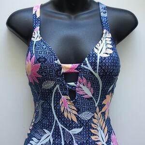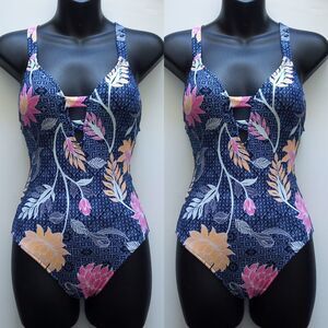 Simple, solid and elegant, the Seafolly Women’s Active Deep V One Piece Swimsuit flatters with its unique cuts. Double bands across the chest and back add a complimentary detail to this supportive one piece.