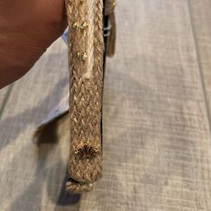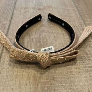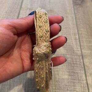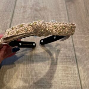 Beautiful headband in neutral color with gold accents and crystals.