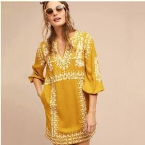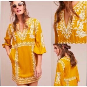 Anthropology Akemi + Kin Shiloh Yellow Embroidered Dress.