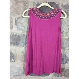 Anthropology Akemi + Kin Vizela Tank Top Woman's XS Pink Embroidered Beaded
