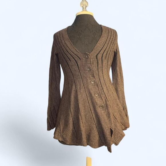 Anthropology Asymmetrical Brown Fairy Boho Cotton Top Cardigan Button Front Long Sleeve Size Small
