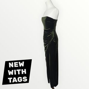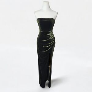 This elegant olive green strapless dress is perfect for any occasion. Its sleek design and rich color make it a standout piece in any wardrobe.